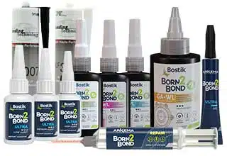 Les adhésifs Born2Bond™ Ultra et Born2Bond™ Ultra Gel sont disponibles avec différents niveaux de viscosité allant de faible à fort et des temps de prise allant de 5 secondes à 10 secondes.