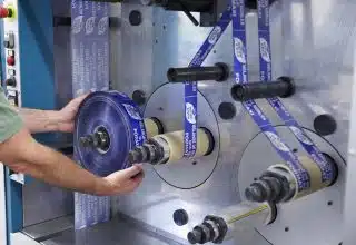 Une fois toutes ces étapes réalisées, la conception de votre adhésif imprimé peut commencer. L’opérateur ou l’opératrice met en machine la bobine adhésive neutre. Le système s’enclenche avec une découpe des rouleaux à la dimension souhaitée puis l’apposition de l’encre en fonction du visuel fourni.